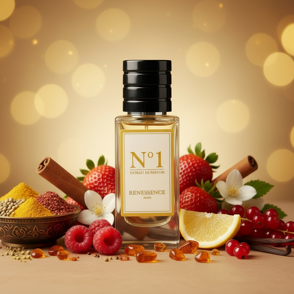 Le N°1 s’ouvre sur un éclat d’agrumes lumineux, caressé par la douceur sucrée d’une vanille dorée. En cœur, un bouquet de fleurs blanches veloutées se mêle aux accents fruités et poudrés, dessinant la silhouette d’une élégance intemporelle.